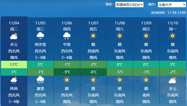 乌鲁木齐将现连续降温,并伴有较强降雪。